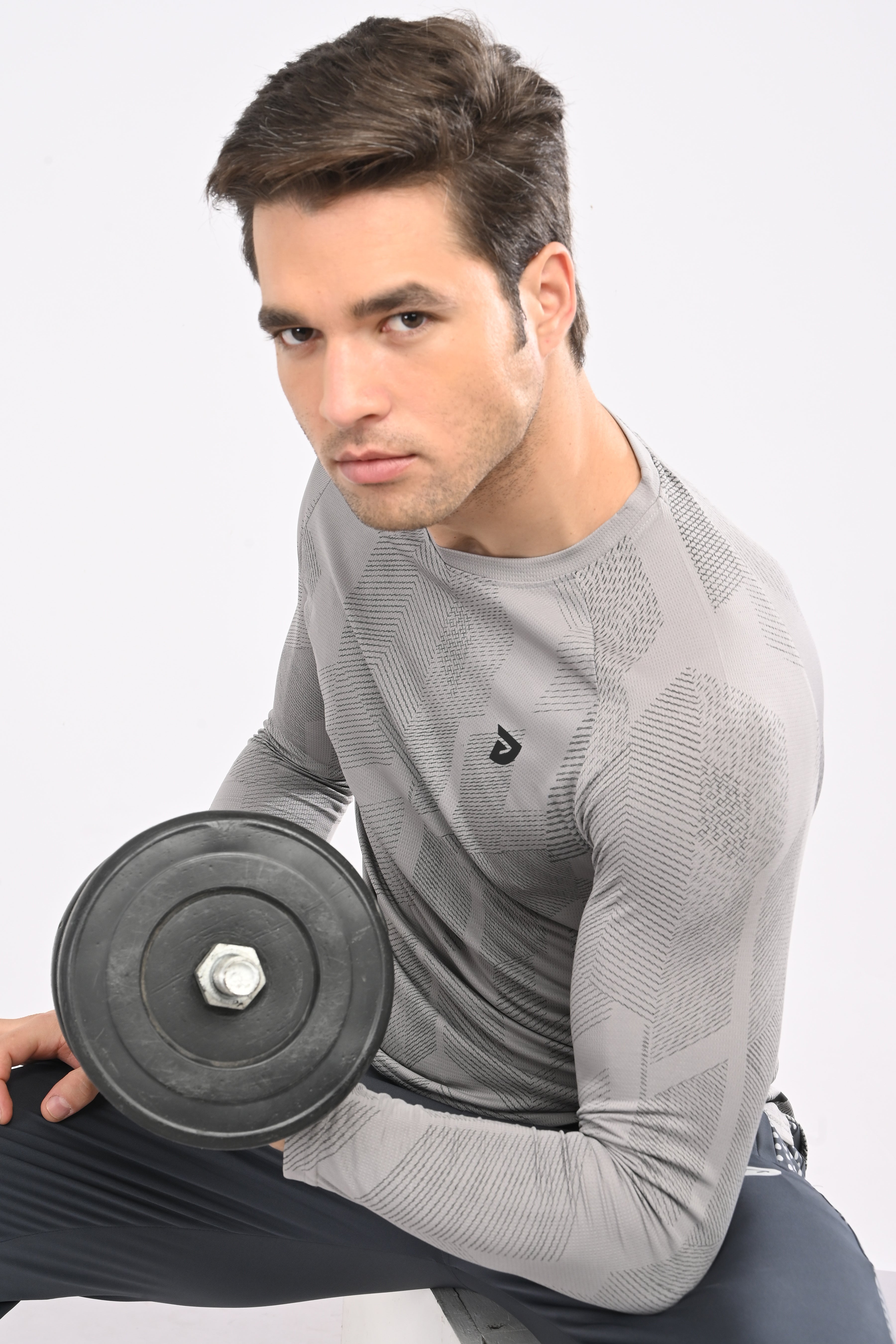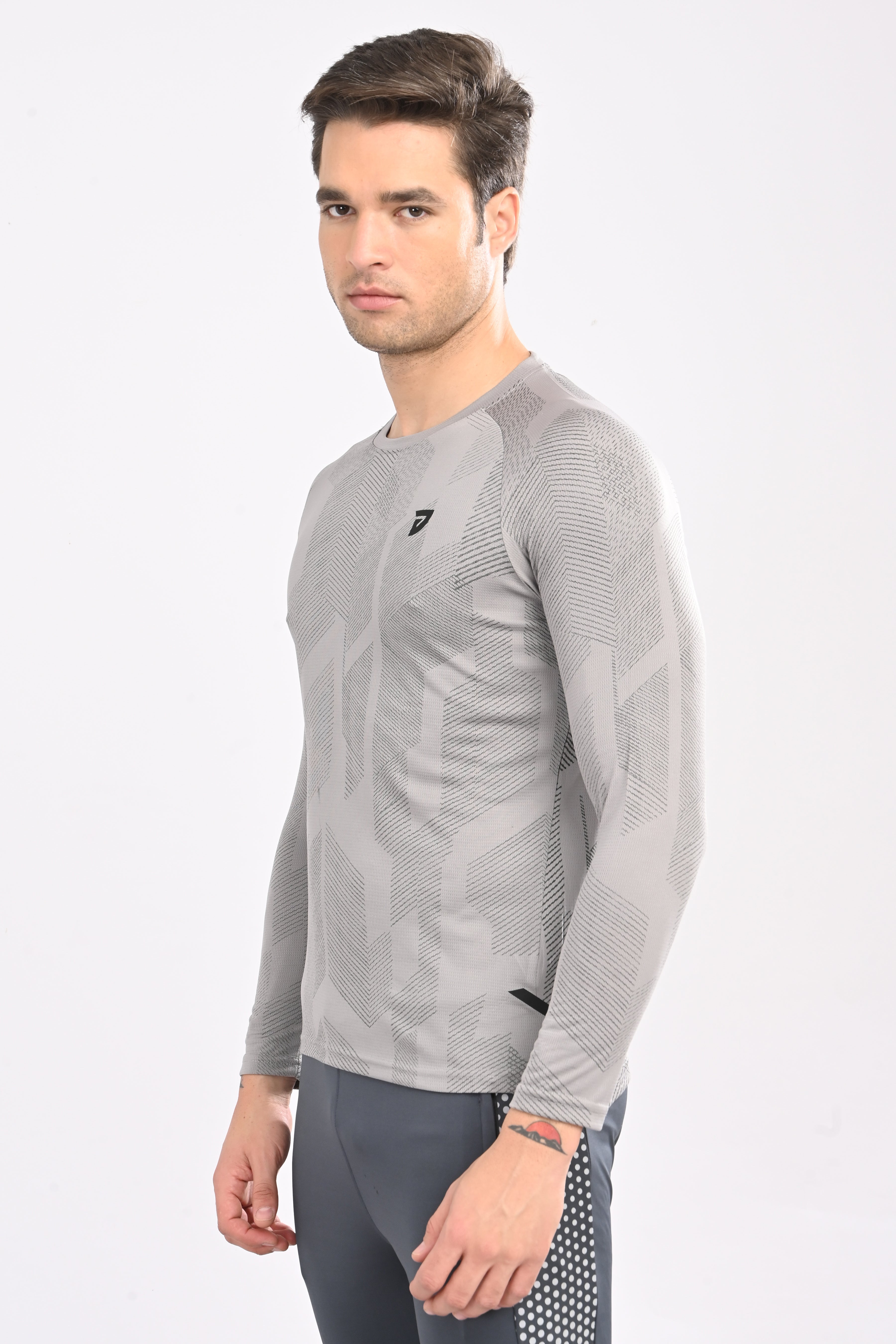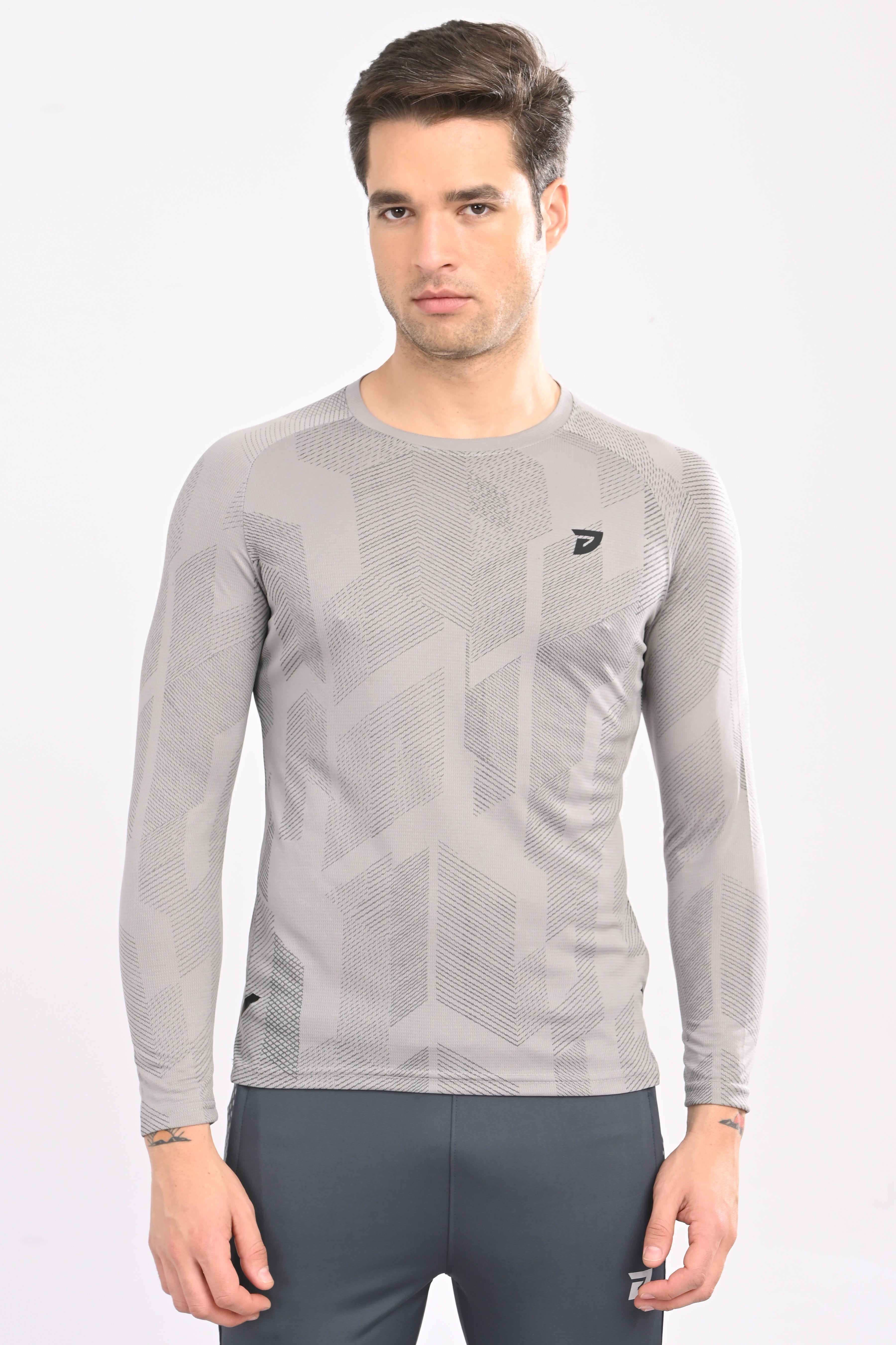 KA53 Printed Long Sleeve T-Shirt for Men | Light Grey
